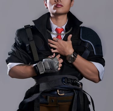 Imagina una silueta forjada para resistir el colapso social— no sedienta de poder, sino consciente de él. La brutalidad no está en la violencia, sino en la ruptura deliberada de la forma. El liberalismo no como política, sino como la silenciosa negación de la obediencia visual. Esta es la energía de una figura central en un mundo fracturado— posada en el borde del colapso, envuelta en recuerdos, caminando con intención.